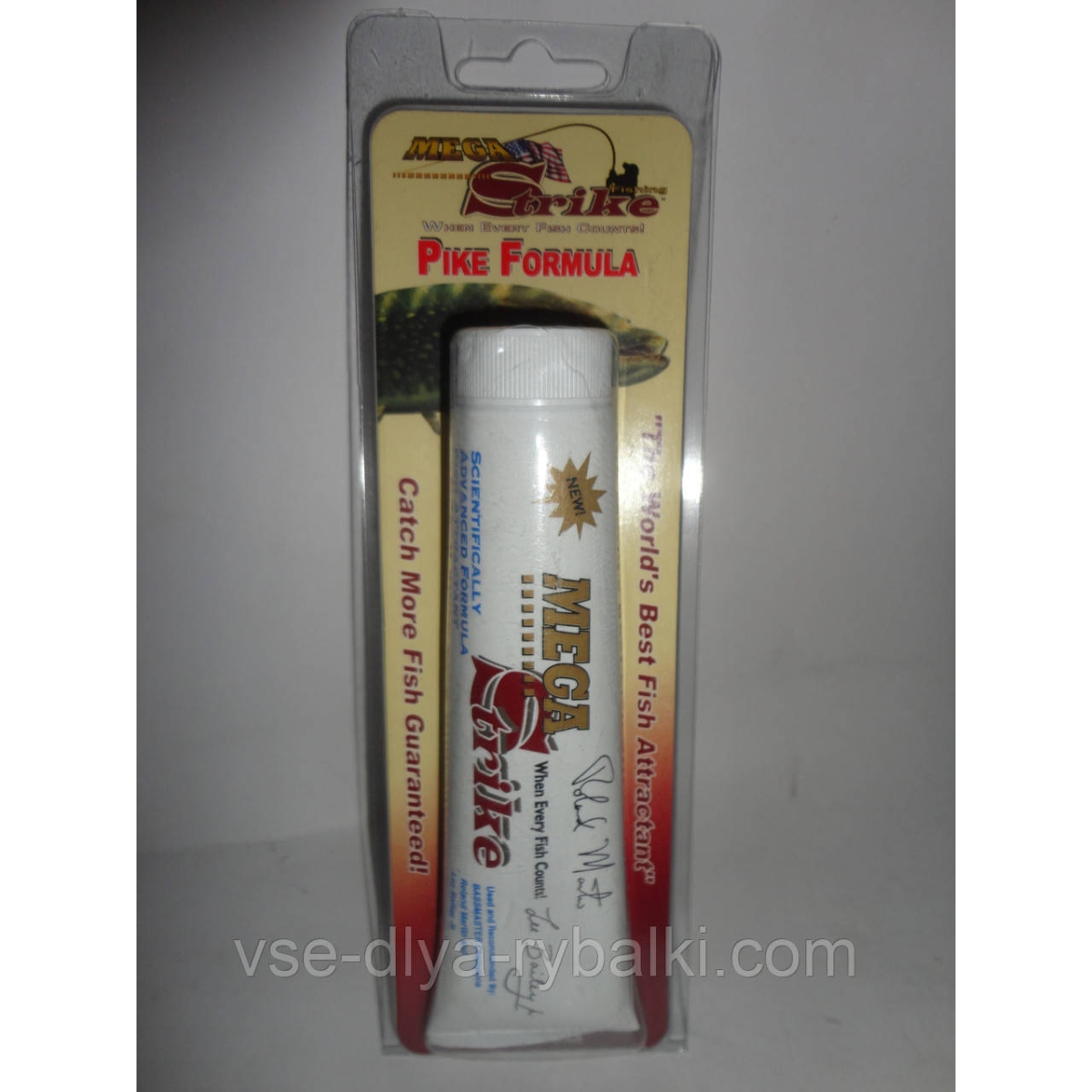 Атрактанти пройшов безліч випробувань і отримав схвальний відгук ряду професійних рибалок. Цей атрактанти виготовлений із збалансованої суміші протеїнів, амінокислот і інших, секретних інгредієнтів. Mega Strike миттєво привернув до себе самий широкий інтерес у всьому світі і сьогодні став одним з основних атрактантів в арсеналі багатьох рибалок. Компанія Mega Strike вела розробку цього активатора клювання протягом дев“яти років. Випускається він у формі вельми зручного в застосуванні для риболовлі гелю. Звіт по MegaStrike Якщо з звичайним застосуванням цього аттрактанта питань не виникало – практично всі рибалки відзначали поліпшення клювання, трохи менша при лові щуки і окуня і більш значна для судака і особливо сома. Це загалом добре пояснюється саме сом і судак при своїй полювання орієнтуються не тільки на зір, але і на свій нюх.