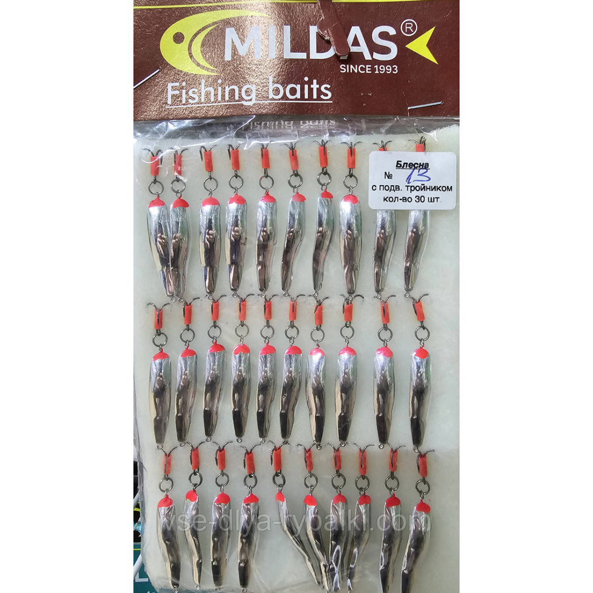 Блешня з підвісним трійником велика Мілдас срібло No 13