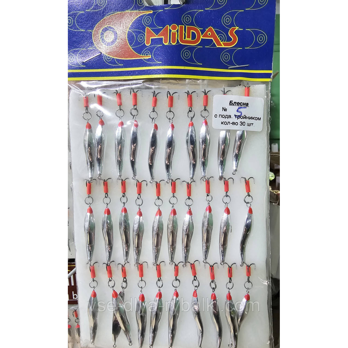 Блешня з підвісним трійником велика Мілдас срібло No 5