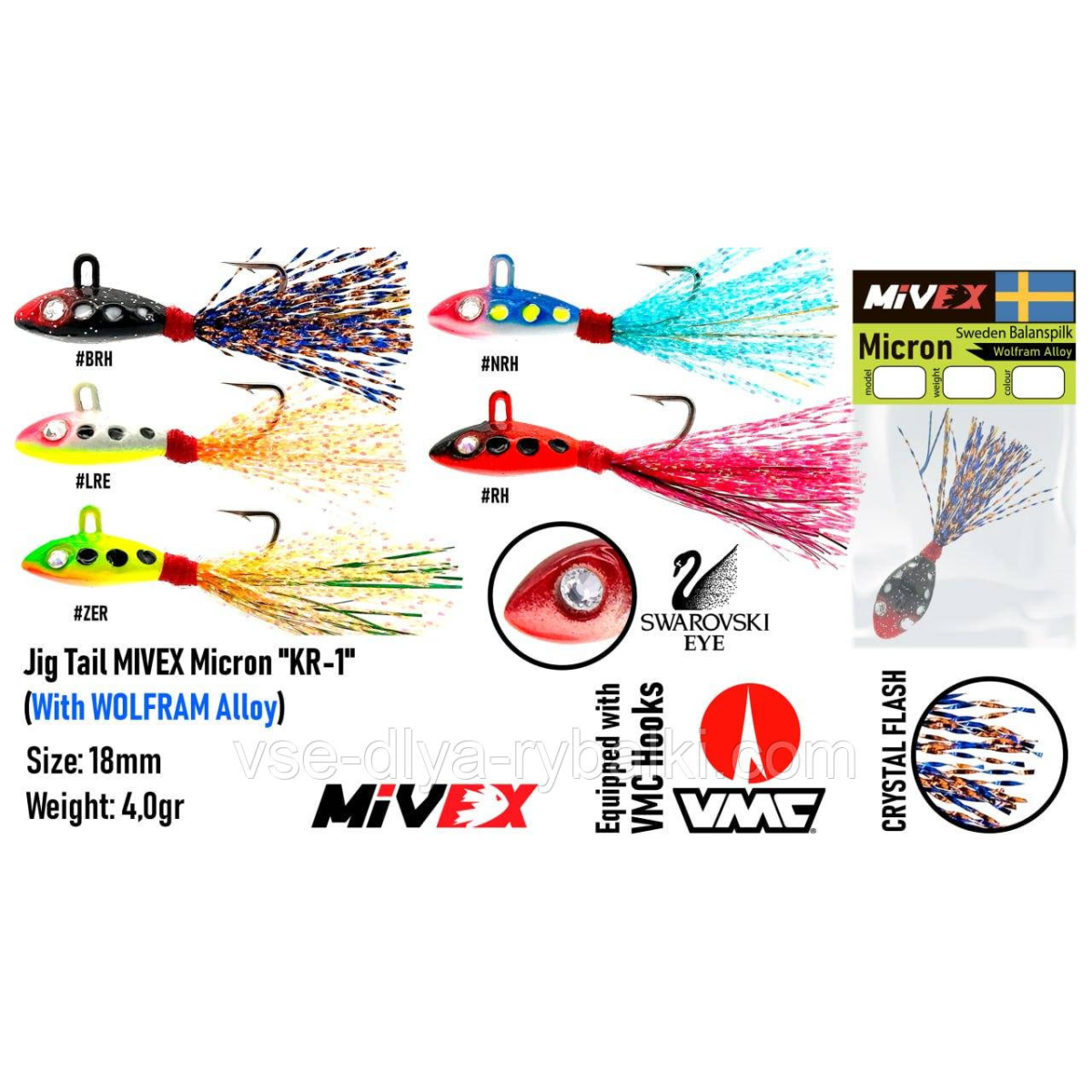 Балансир Jig Tail MIVEX Micron KR-1 18 мм 4 гм NRH + Swarovski EYE