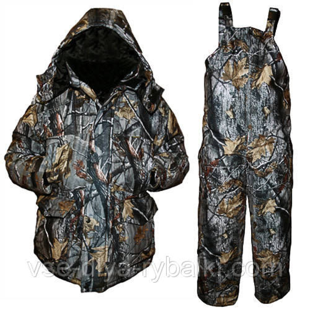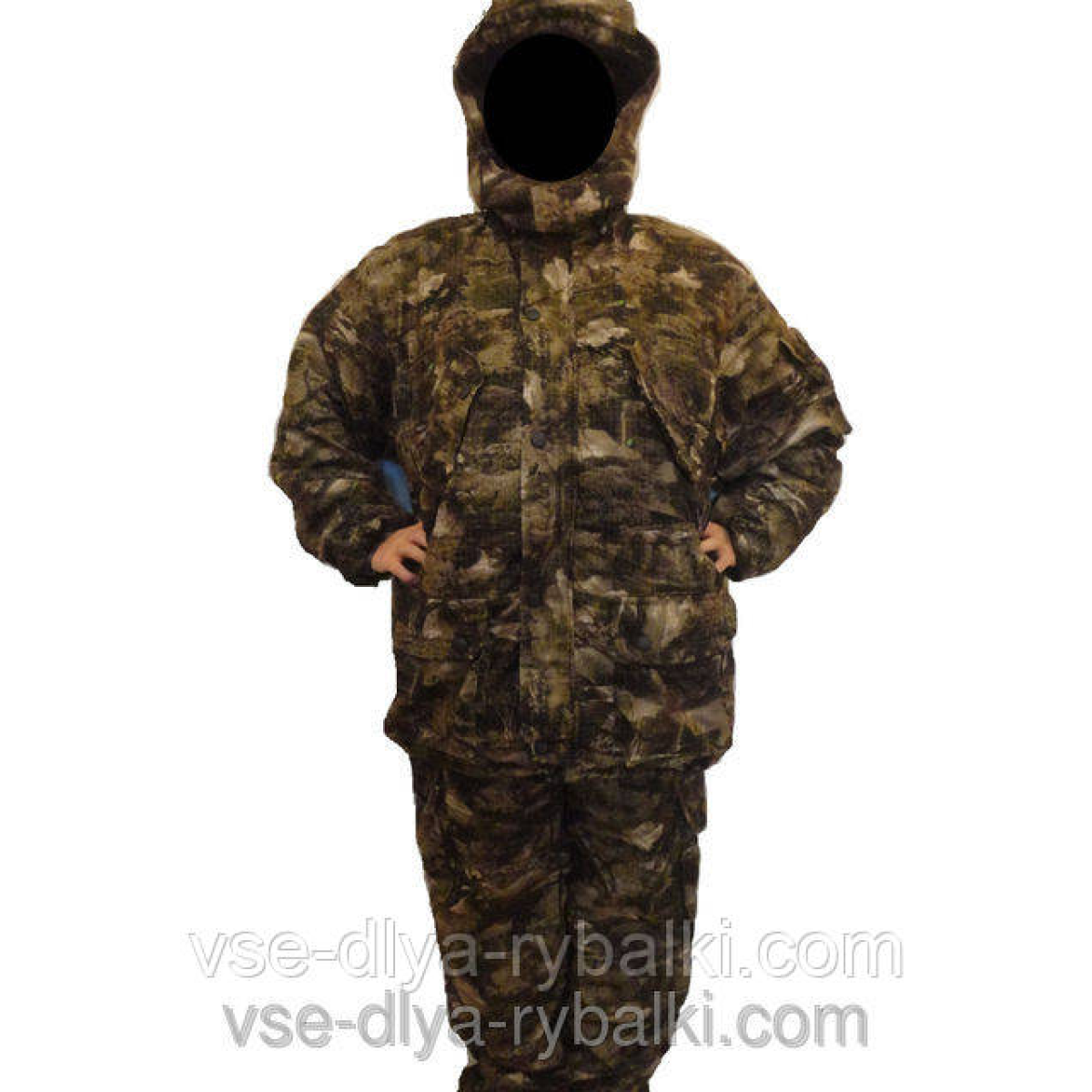 Костюм рассчитан на температуру до -30 градусов. Зимний теплый костюм для леса покупают и на охоту и на рыбалку. Охотники ценят качество зимнего костюма не шуршать при ходьбе. А рыболовам часто не хватает теплого зимнего костюма, в котором можно долгое время находится практически без движения и не мерзнуть. Молния на куртке закрывается ветрозащитным клапаном. Ткань зимнего костюма не шуршит, не продувается и имеет внутреннюю водоотталкивающую пропитку. Штаны и куртка зимнего костюмавнутри содержат легкий утеплитель синтепон, который хорошо держит форму костюма. А внутрішня частина зроблена з флісу.