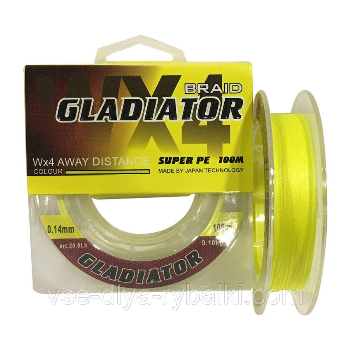 Шнур плетений Gladiator 100m (жовтий) 0.16 mm
