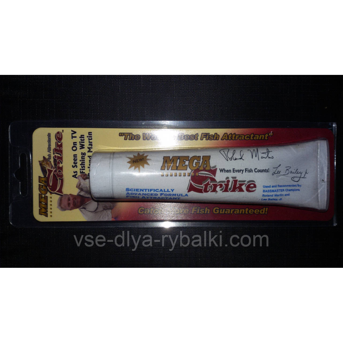 Аттрактант прошел великое множество испытаний и получил одобрительный отзыв ряда профессиональных рыболовов. Этот аттрактант изготовлен из сбалансированной смеси протеинов, аминокислот и других, секретных ингредиентов. Mega Strike мгновенно привлек к себе самый широкий интерес во всем мире и сегодня стал одним из основных аттрактантов в арсенале многих рыболовов. Компания Mega Strike вела разработку этого активатора клёва в течение девяти лет. Выпускается он в форме весьма удобного в применении для рыбалки геля. Звіт по MegaStrike Якщо з звичайним застосуванням цього аттрактанта питань не виникало – практично всі рибалки відзначали поліпшення клювання, трохи менша при лові щуки і окуня і більш значна для судака і особливо сома. Це загалом добре пояснюється саме сом і судак при своїй полювання орієнтуються не тільки на зір, але і на свій нюх.